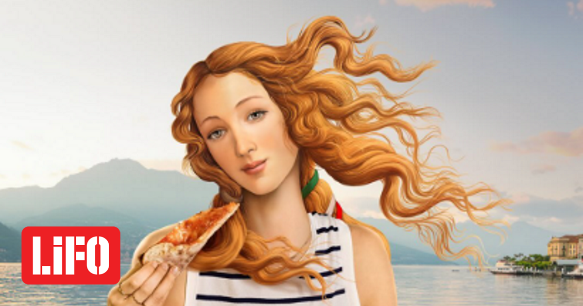 “Venere moderna” indossa una minigonna e viene vista mangiare la pizza e mette in mostra alcune delle principali attrazioni turistiche d’Italia come Colosseo Roma o Duomo di Firenze.