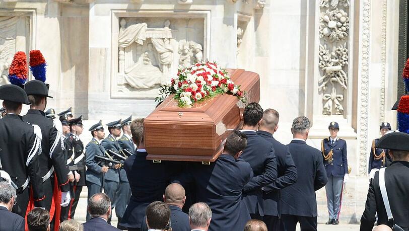Il pubblico ha salutato Berlusconi durante un servizio funebre a Milano mercoledì dalle 15:00. Oltre ai suoi parenti, circa 2.300 ospiti invitati della politica, degli affari e delle celebrità hanno partecipato alla procedura presso la cattedrale. In totale, circa 17.000 spettatori e fan si sarebbero radunati nelle strade intorno alla cattedrale per i funerali di stato. Sono state segnalate anche diverse proteste contro il controverso politico.
