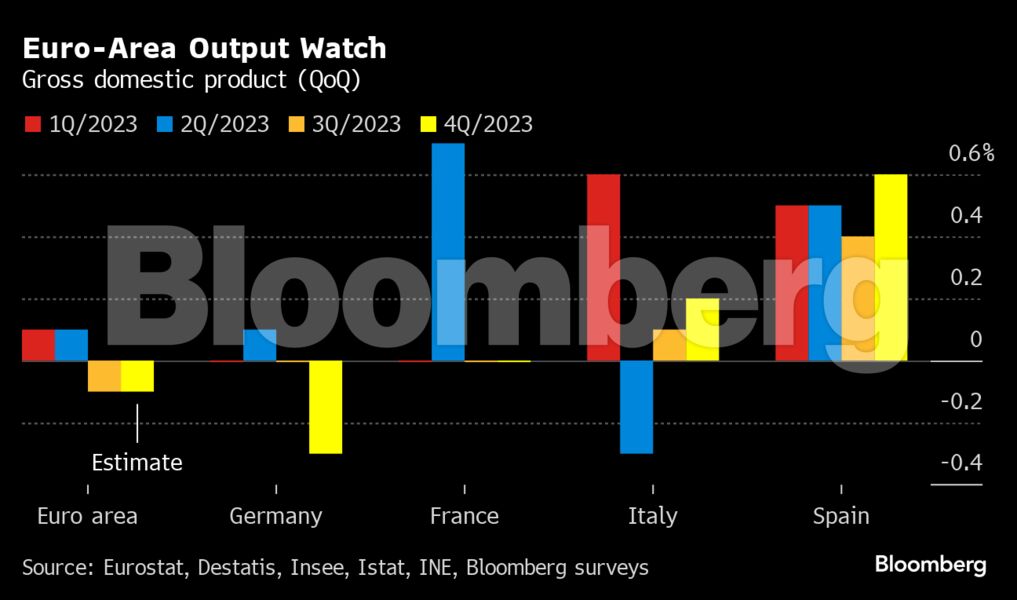In Spagna l’economia è cresciuta dello 0,6% nel quarto trimestre – ben al di sopra della stima dello 0,2%. e in gran parte guidato dai consumi delle famiglie, secondo l’agenzia statale di statistica INE. Ciò spinge la crescita nel 2023 al 2,5%.